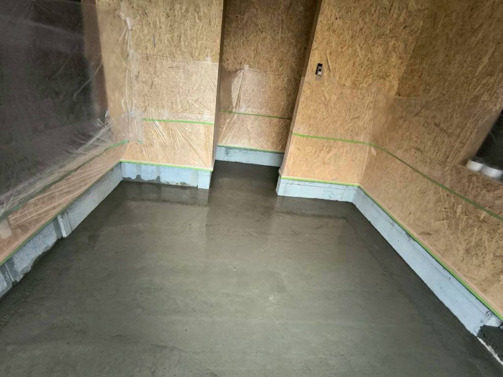 内部の土間打ちをしたところで、